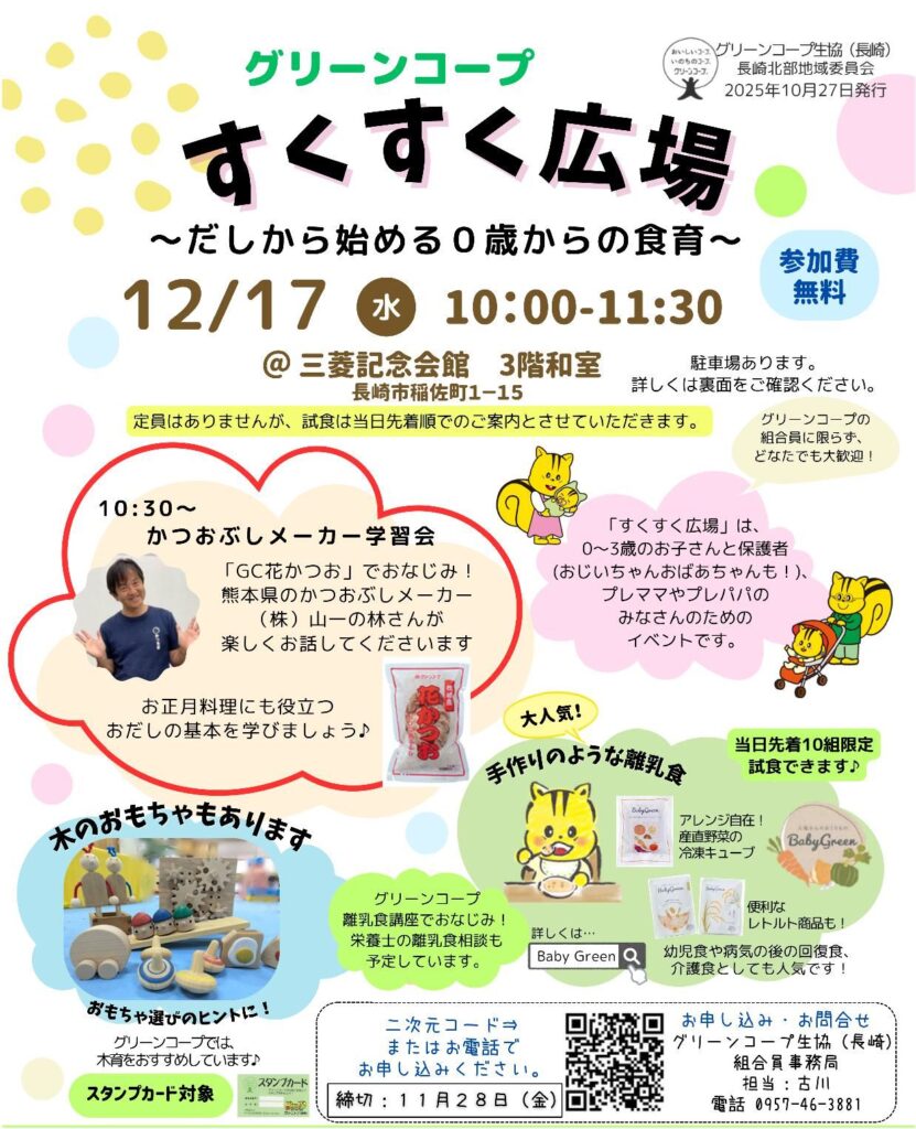 12月17日(水)、長崎市で「すくすく広場」を開催します!