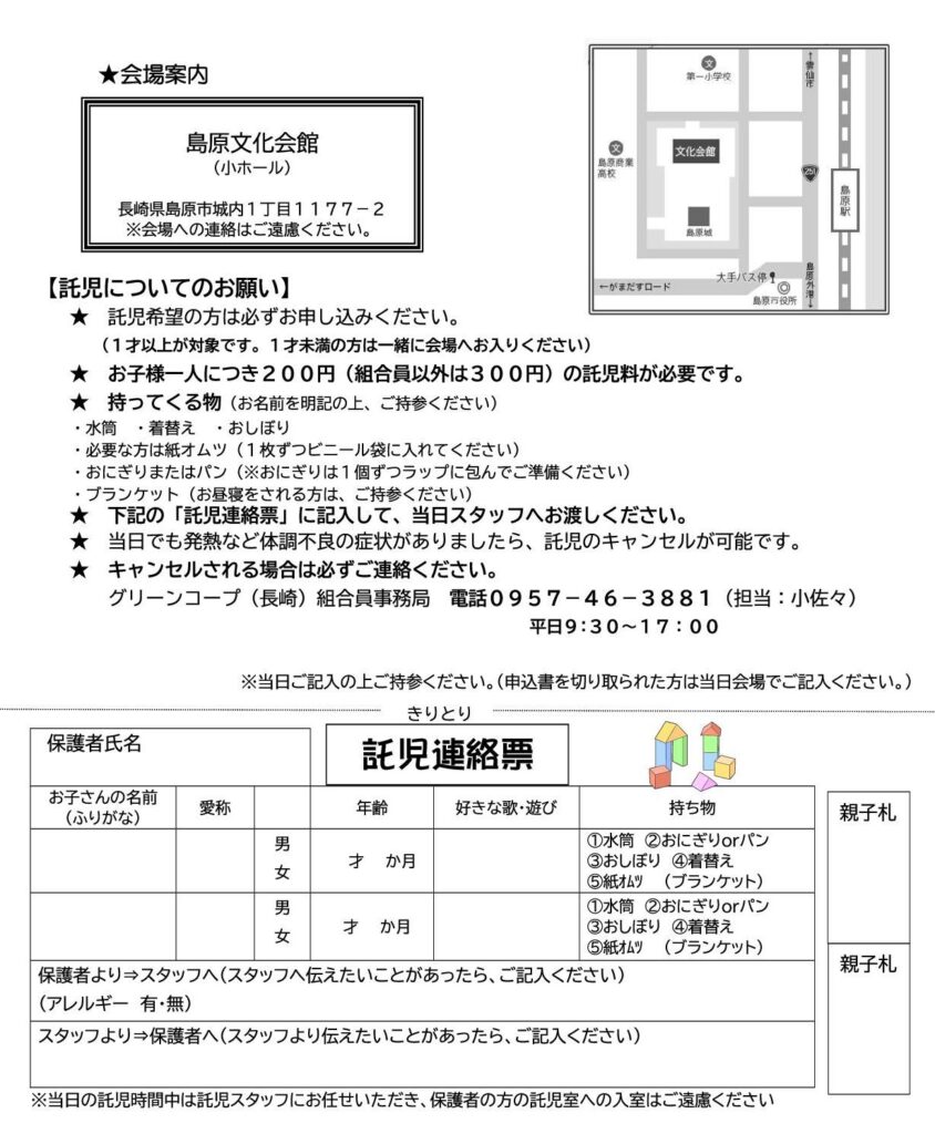 ※1歳以上のお子様は託児があります。(事前申込が必要 組合員200円、組合員外300円)